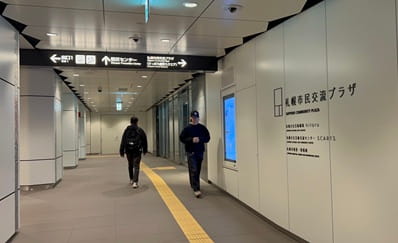 札幌市民交流プラザで右手に曲がり、エスカレーターで1Fまで上る